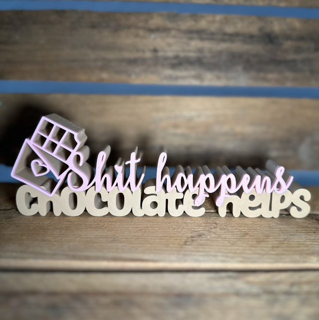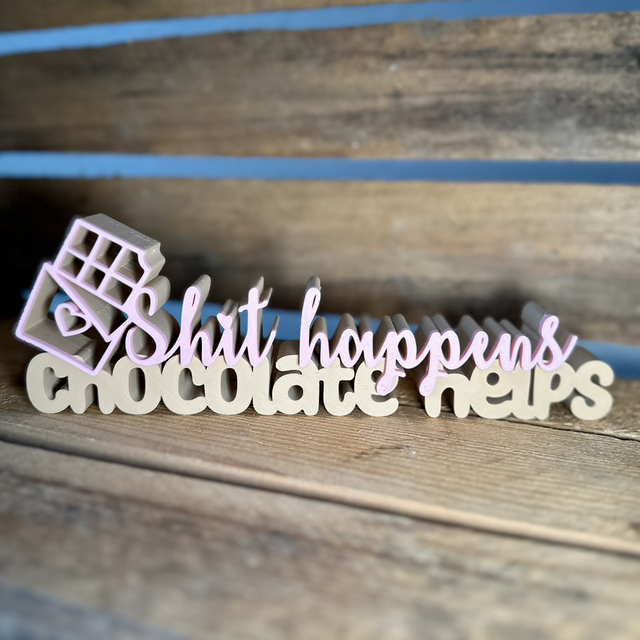 Manchmal läuft’s einfach nicht rund – doch Schokolade oder ein Gläschen Wein helfen garantiert dabei, den Tag zu retten! Unsere 3D-gedruckten Schriftzüge sind das perfekte Deko-Statement für Küche, Wohnzimmer oder als humorvolles Geschenk.