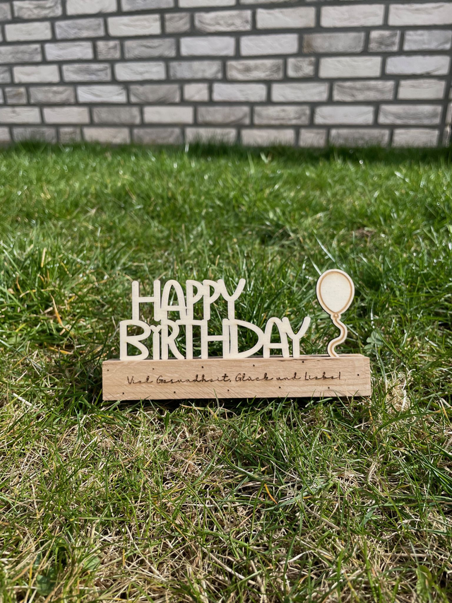 Dieses liebevoll gestaltete Klötzchenmotiv ist eine besondere Art, „Happy Birthday“ zu sagen! Die Kombination aus modernem Holzdesign und personalisierbarer Gravur macht dieses Stück zu einem echten Hingucker auf jedem Geburtstagstisch.