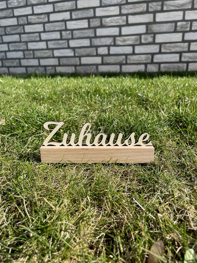 Diese Klötzchenmotive „HOME“ und „Zuhause“ sind perfekte Dekorationselemente für eine gemütliche Wohnatmosphäre. Die filigranen Schriftzüge aus naturbelassenem Holz verleihen jedem Raum eine warme, einladende Note.